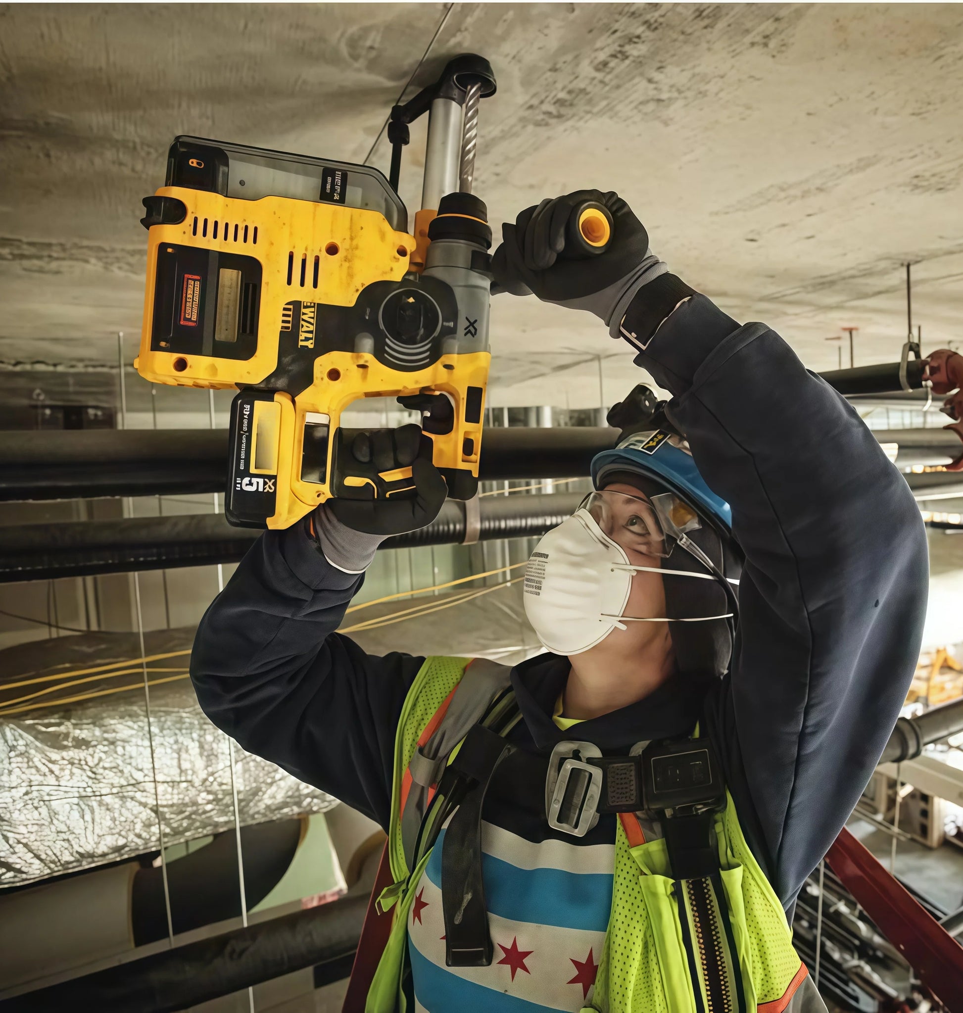 Complete rod hanging, seismic and safety attachments, cable tray and strut mounting, clamp mounting, and/or rail mounting applications with the 20V MAX* XR® 1 in. Rotary Hammer. This high-performance drill is powered by a brushless motor and a durable German-engineered mechanism that delivers 2.1 Joules of impact energy.